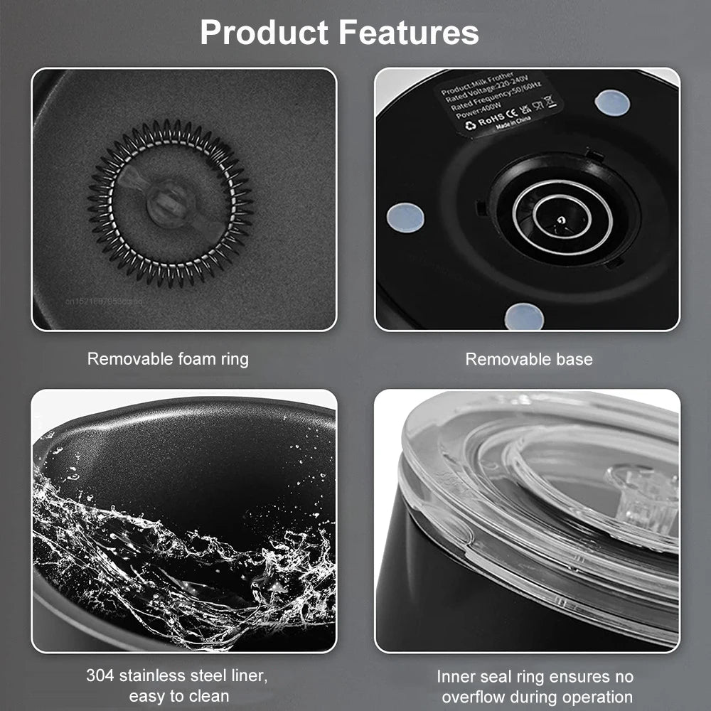 • 4-in-1 Versatility – Hot or Cold Foam: Create creamy foam, hot milk, or cold froth with one touch.